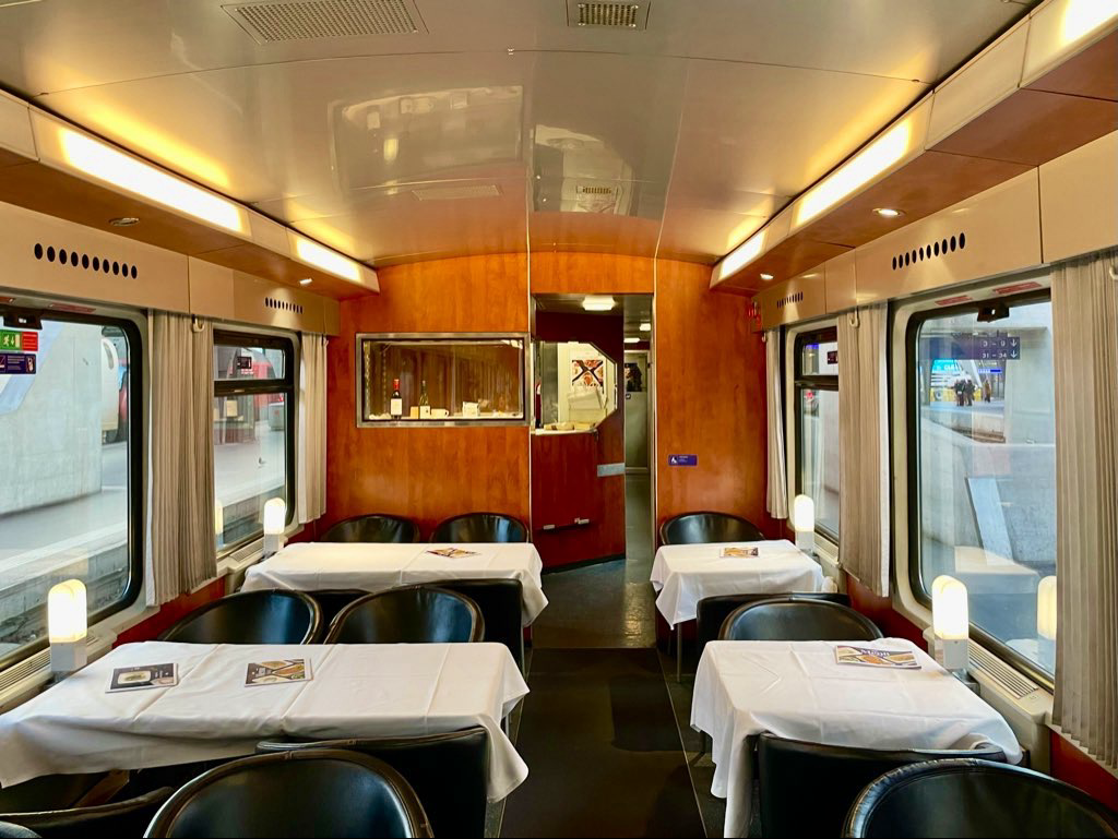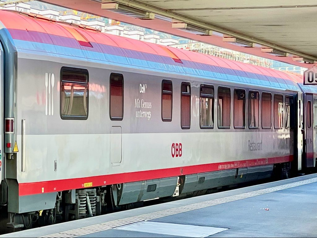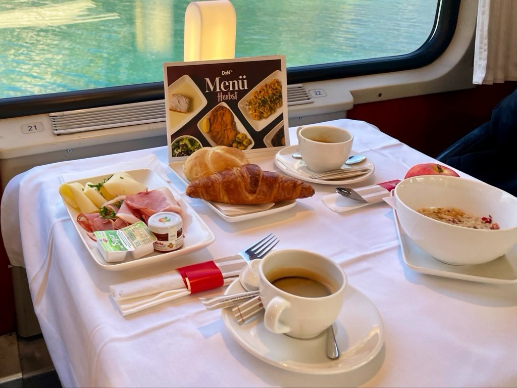 Good morning from the #EuroCity #Transalpin #DiningCar. This is one of the few “full diners” remaining with #ÖBB 🇦🇹. There are plenty of seats available. An ideal place to enjoy breakfast as we pass by the lakeside just after leaving #Zurich🇨🇭.