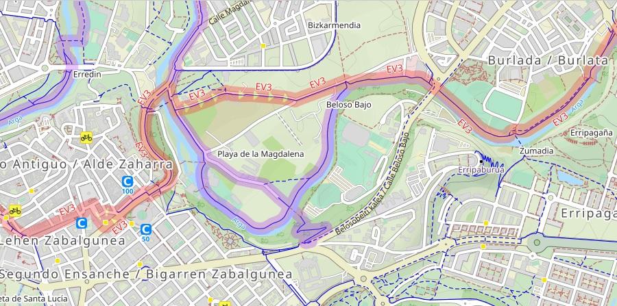 Bai, horixe da.Ondo dago zati hau, baina gero ezerezarekin topo egiten duzu, bai Iruñean bai Burlatan (txirrindulariak errepidean ikusi nituen Burlatan).