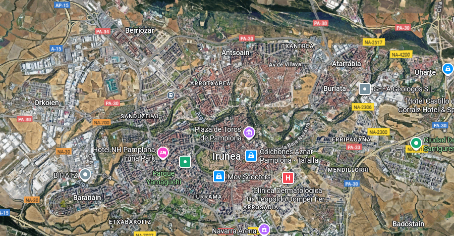 Iruñerria, de facto, hiri bakarra da, 350000 biztanlekoa. Donostialdean adina biztanle, baina Donostian aldiri zerbitzuak ematen dituzten bi trenbide dauden bitartean, hemen ez dago horrelakorik.