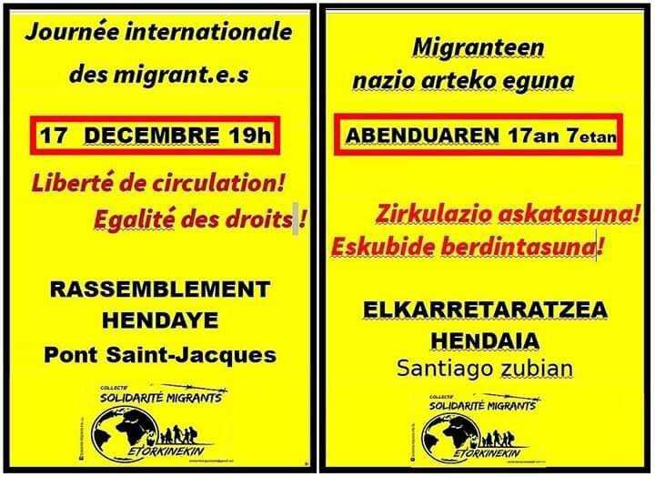 RT @Likiniano1@twitter.com: Nos vemos el dia 17 a las 19:00 en el puente de santiago de Irun-Hendaia en apoyo a los migrantes y a las compas solidarias de Iparralde.