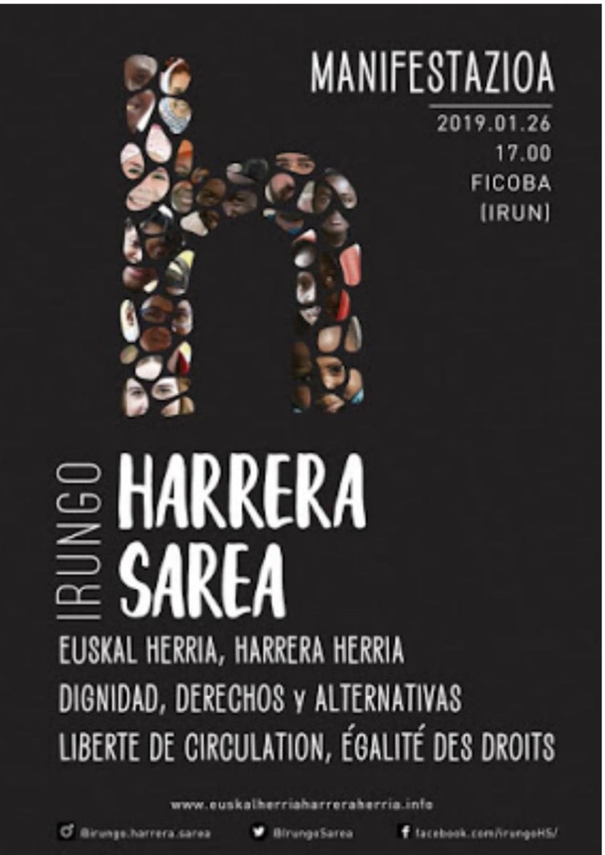 ✍️📣 Datorren urtarrilaren 26an trantsitoan dauden pertsonei elkartasuna adierazteko ordua da. Manifestuarekin bat egin eta sina ezazu #26Irunera #El26aIrun #euskalherriaharreraherria 👇🏽👇🏾👇🏿