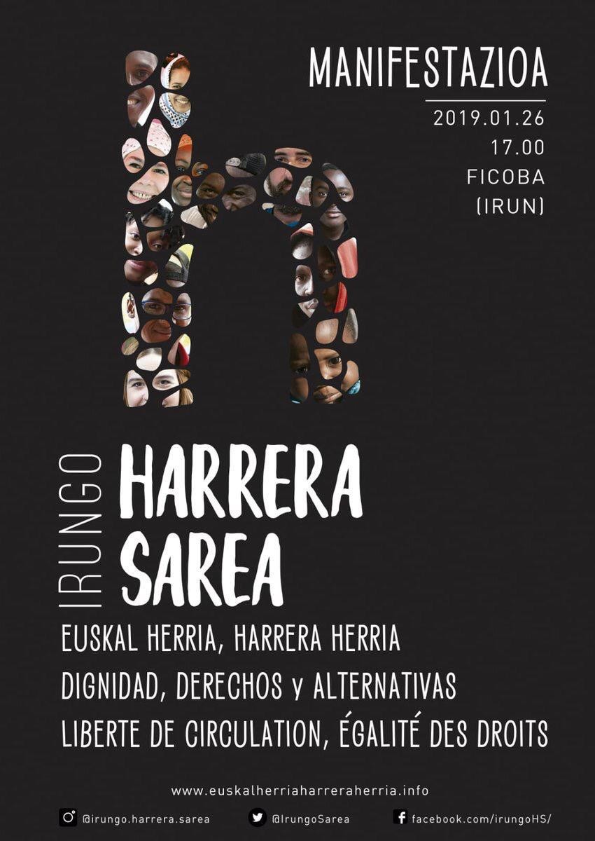 Irungo Harrera Sarea convoca una manifestación este sábado 26 de enero a las 17h http://bit.ly/2HsZE3Q