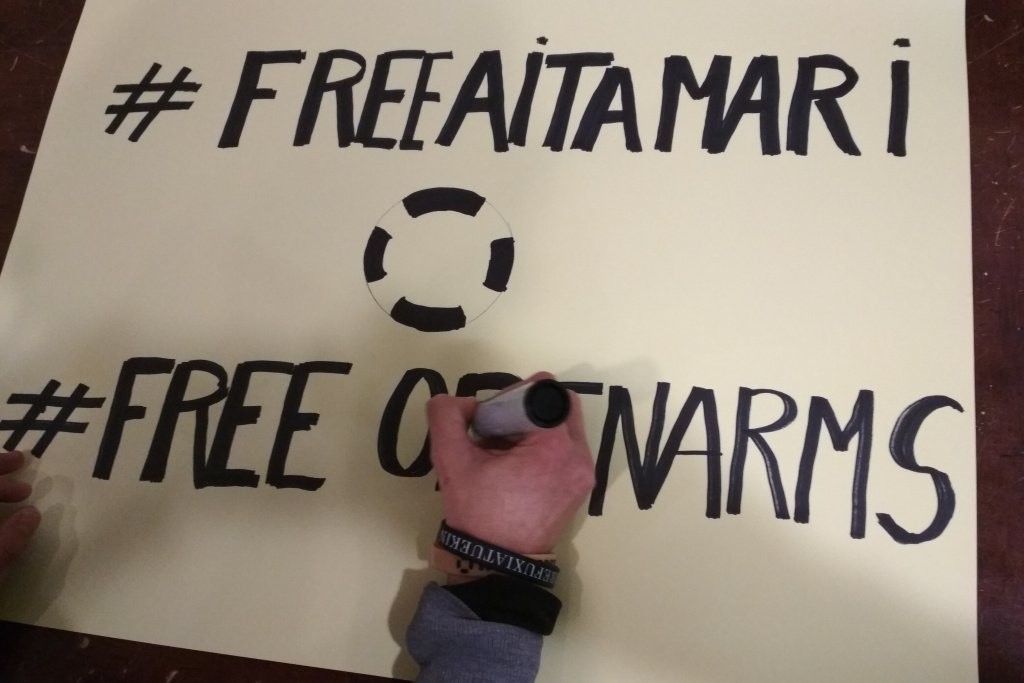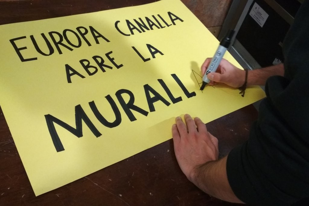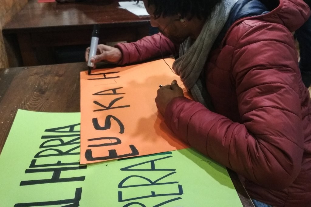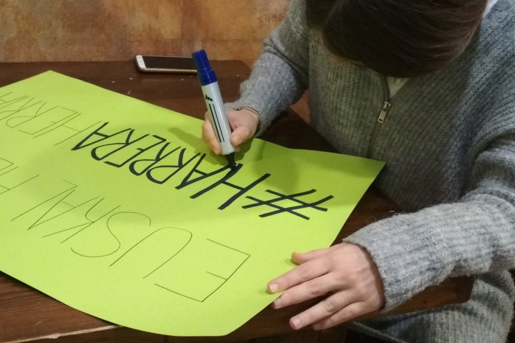 Denok gabiltza lanean, larunbateko manifestaziorako kartelak prestatzen.