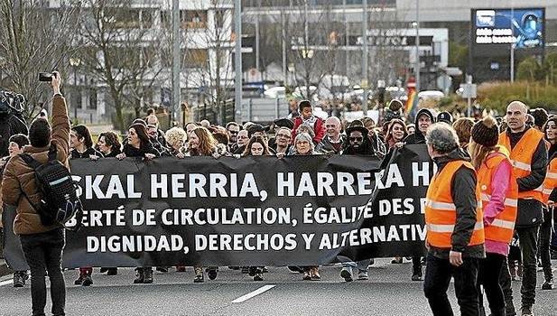 Pankarta sorta lurrean... Aurki altxako dituzte, Hendaiara joatea da asmoa, migratzaile askori ixten zaien bidea egitera. @berria@twitter.com t.co/Mh6WKRTfZ3