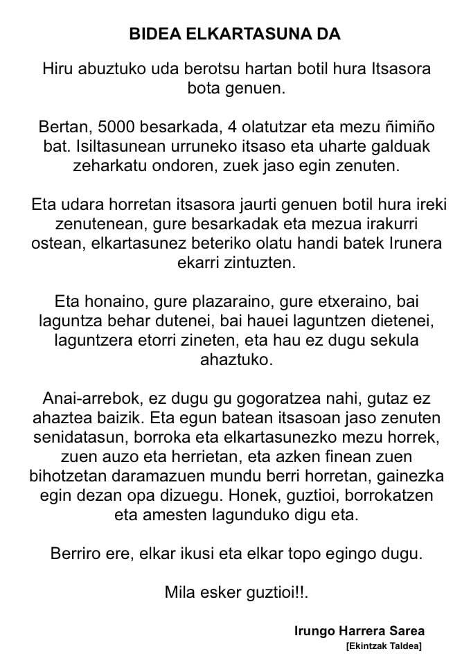 Irungo Harrera Sarea no se volverá a reunir con el Ayuntamiento http://bit.ly/2Ed96EZ