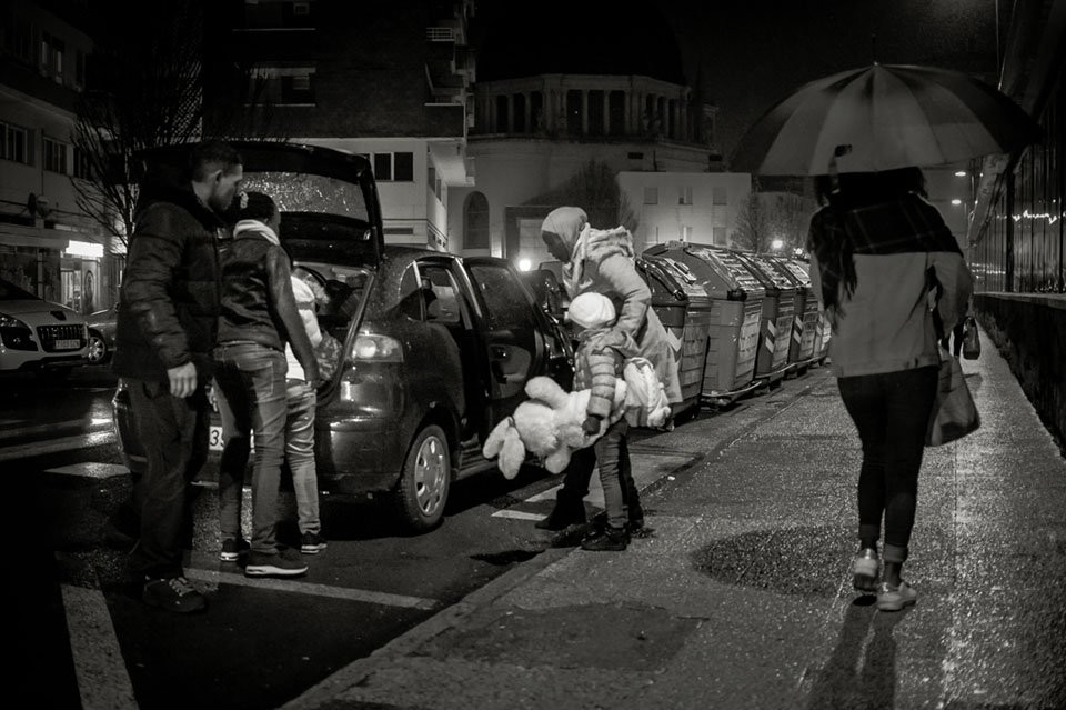 Two young women, with two little girls, enter the passeur's car and leave the place. (@GariGaraialde / @BostokPhoto)