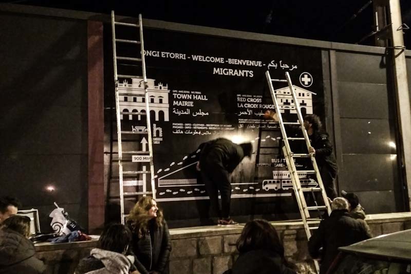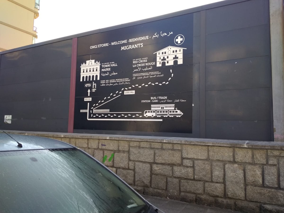 A Irun, le réseau d'accueil des exilés balise le chemin entre la gare et le centre d'accueil de Martindozenea. Pendant que la Mairie se trouve des excuses, eux ils agissent ! Aupa zuek eta kuraia on Baionatik @IrungoHS@twitter.com !