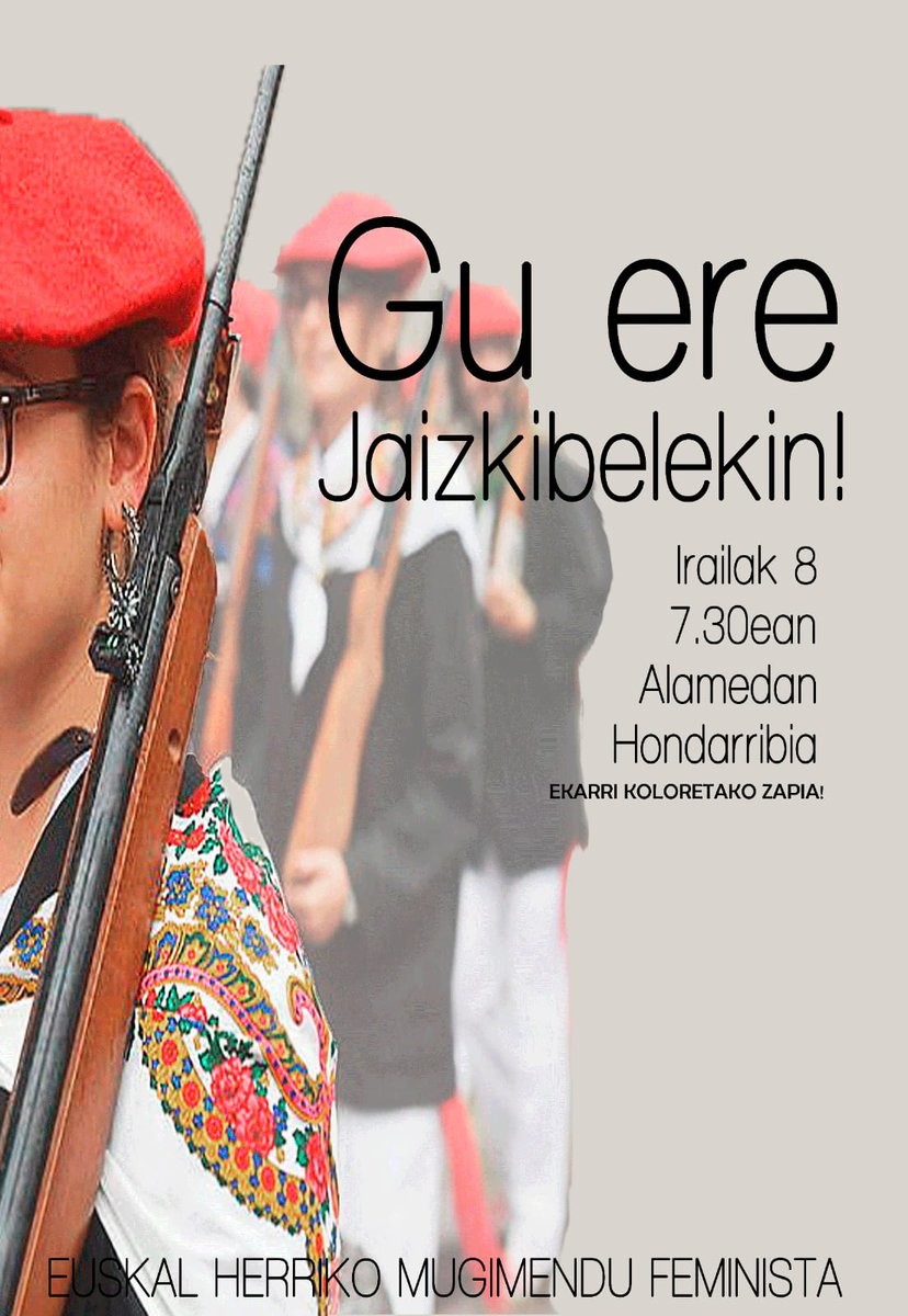 Euskal Herriko Mugimendu Feministak deialdia zabaltzen du Hondarribira joateko! Ni han izango naiz @Jaizkibel6@twitter.com txalotzen eta zu?