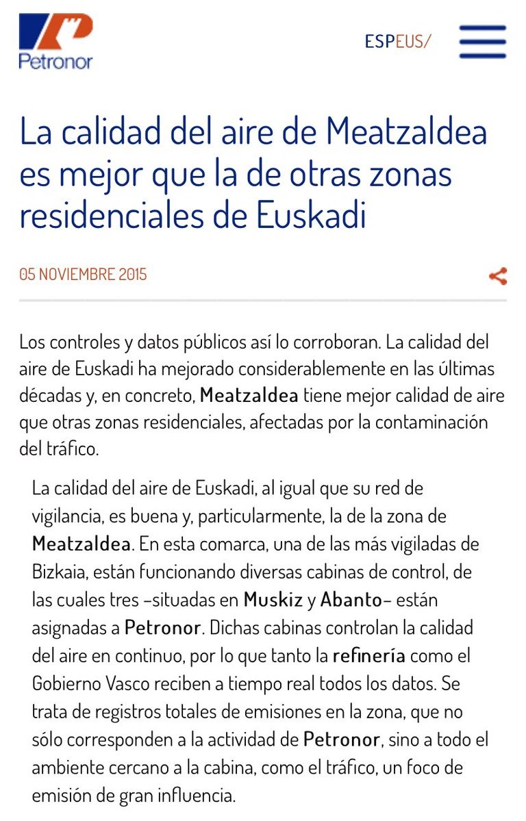 Todo esto lleva años pasando en Meatzaldea con Petronor. Pero ellos se ríen de la ciudadania.