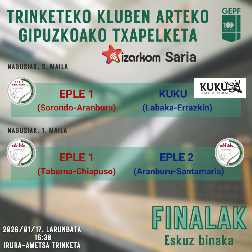 Aurreko astean jakitera eman genuen moduan, hitzarmena sinatu du Izarkomek Gipuzkoako Euskal Pilota Federazioarekin, eta Izarkomek txapelketa ezberdinen finalak telebistaz eman ahal izateko internet konexioa eskain eta Trinkete Txapelketak babestuko ditugu. Honen harira, Trinketeko Kluben Arteko Gipuzkoako Txapelketa – Izarkom Sarian Eskuz binakako finalak jokatuko dira, larunbatean.